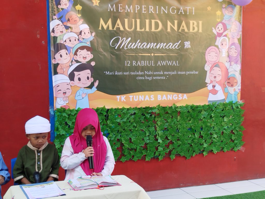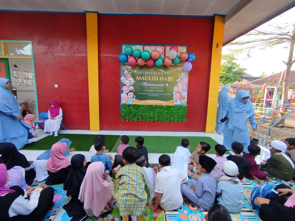 TK Tunas Bangsa menggelar acara peringatan Maulid Nabi Muhammad SAW pada hari Jumat, 12 September 2025, yang berlangsung meriah dan penuh nilai edukatif. Acara ini diselenggarakan di halaman sekolah dan dihadiri oleh seluruh siswa, guru, serta sejumlah orang tua murid.